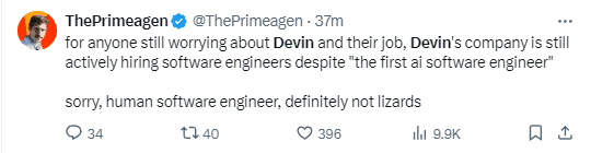 有趣的是,儘管大多數人認為 Devin 是許多軟體工程師的終結,但 Devin 的製造商 Cognition 正在積極招聘“人類”軟體工程師!意見不一,在我們對 Devin 進行全面測試之前,我們無法得出任何結論。